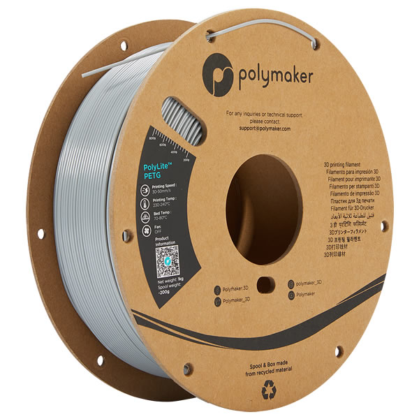 PolyLite™ PETGは、3Dプリンター用素材として既に人気を博しており、幅広く利用されている商品です。PolyLite PETGは、硬くて強いPLAと、丈夫で耐衝撃性のあるABSのちょうど中間に位置する素材で、安定したプリントが可能な為、PolyLiteシリーズの中で一番コストパフォーマンスが高いフィラメントです。