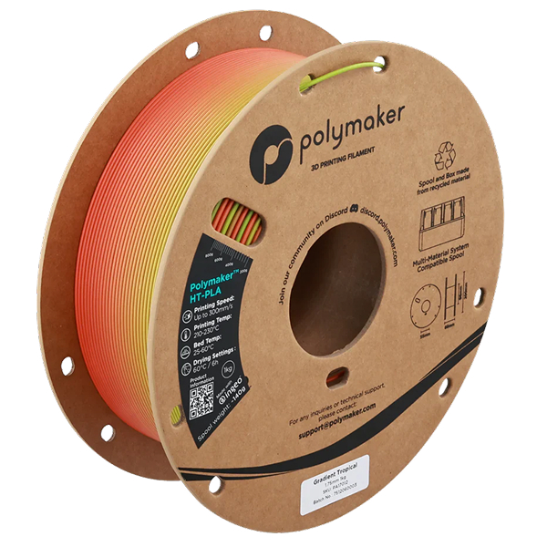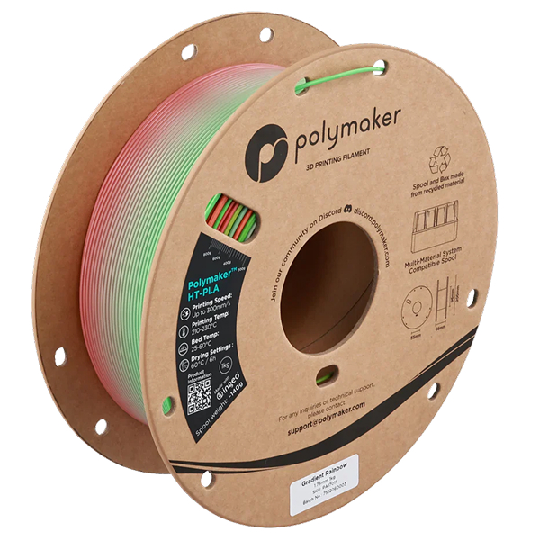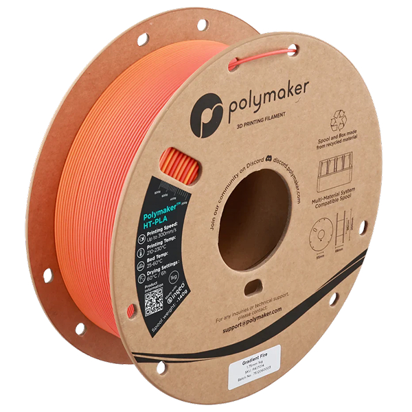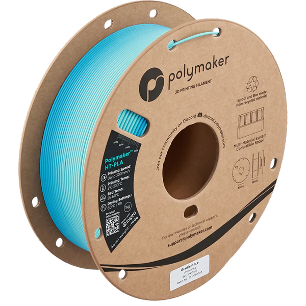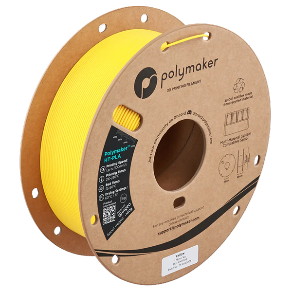 PolymakerのHT-PLAフィラメントは、150℃までの温度でも反りや変形を起こさずに耐えられるよう設計された、高品質な耐熱性3Dプリント素材です。