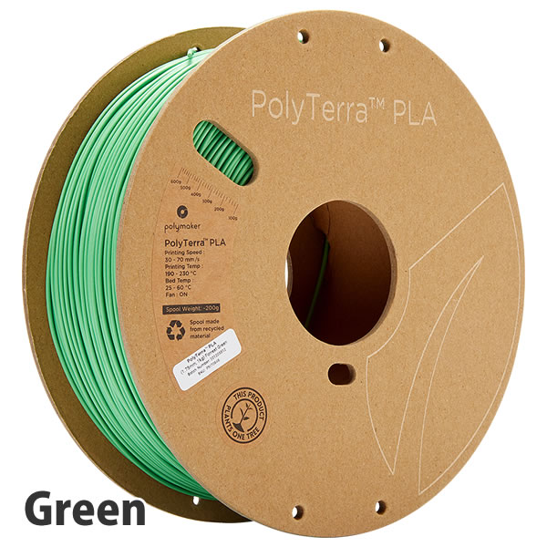 PolyTerra™ PLAは、バイオプラスチックをベースに新たに設計された次世代フィラメントです。Jam-Free™ Technologyで設計された本フィラメントは、印刷中は反り上がらず、ノズル詰まりも少なく、印刷後はラフトやサポート材も剥がれやすく、表面が滑らかで上質な仕上がりになります。また、スプールは市場から回収した廃棄段ボールを原料としており、環境に優しいフィラメントが誕生しました。