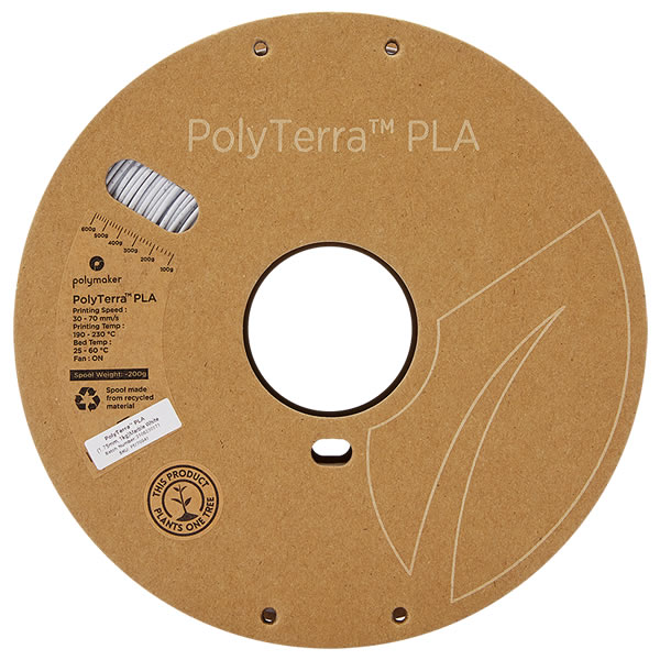 PolyTerra™ PLAは、バイオプラスチックをベースに新たに設計された次世代フィラメントです。Jam-Free™ Technologyで設計された本フィラメントは、印刷中は反り上がらず、ノズル詰まりも少なく、印刷後はラフトやサポート材も剥がれやすく、表面が滑らかで上質な仕上がりになります。また、スプールは市場から回収した廃棄段ボールを原料としており、環境に優しいフィラメントが誕生しました。